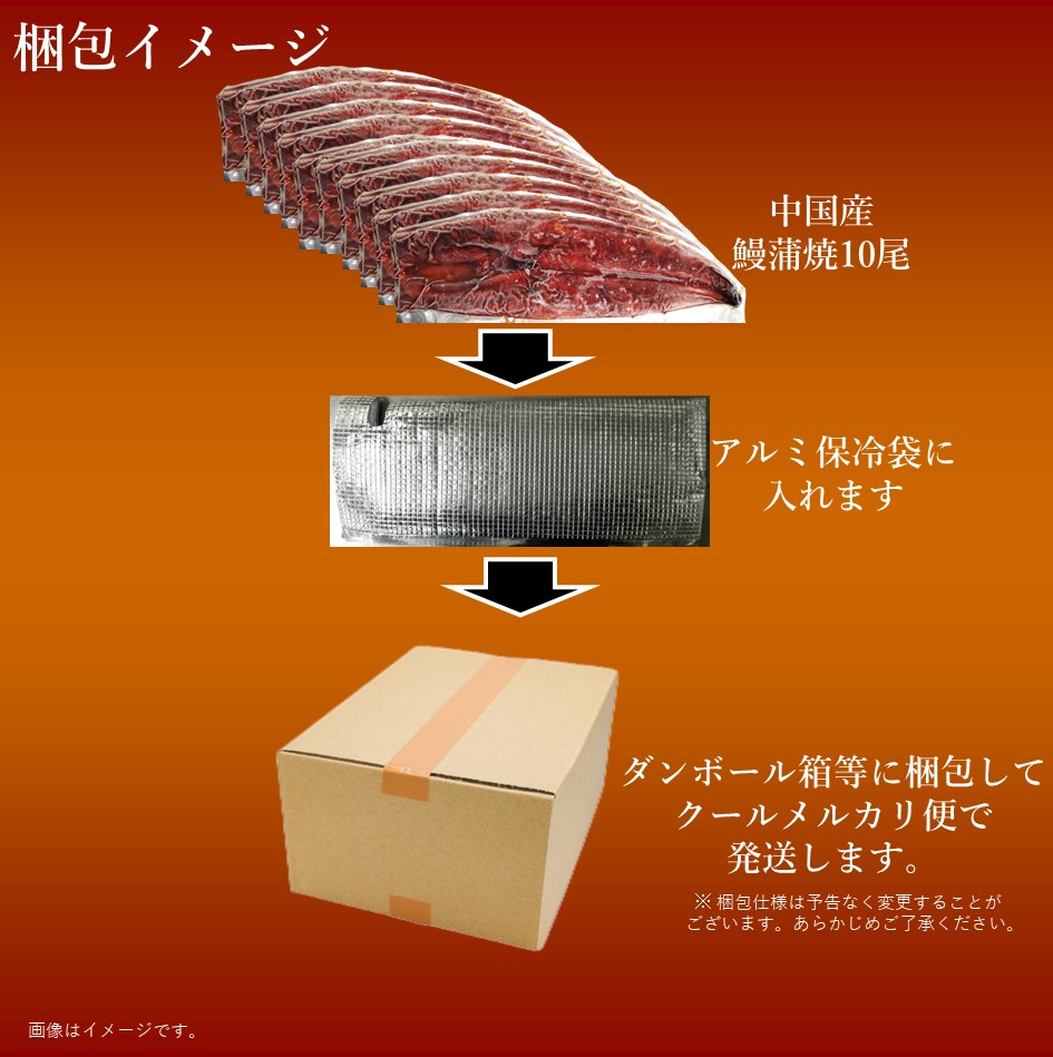 原材料名: うなぎ(中国産)、たれ(しょうゆ、砂糖混合異性化液糖、発酵調味料、水あめ、砂糖、うなぎエキス)/ 酒精、増粘剤(加工でん粉、キサンタンガム)、調味料(アミノ酸等)、着色料(カラメル、アナトー)、(一部に小麦・大豆を含む)